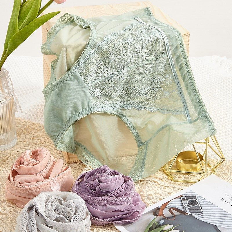 瑶家小铺夏季蕾丝内裤少女纯欲透明网纱无痕透气内裤抗菌收腹提臀