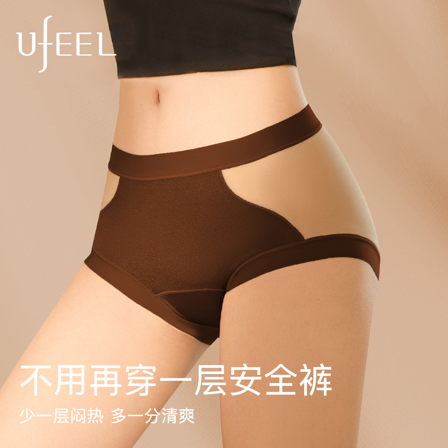 UFEEL中高腰平角微收腹内裤2026新款粉底肤无痕透气三角裤2620