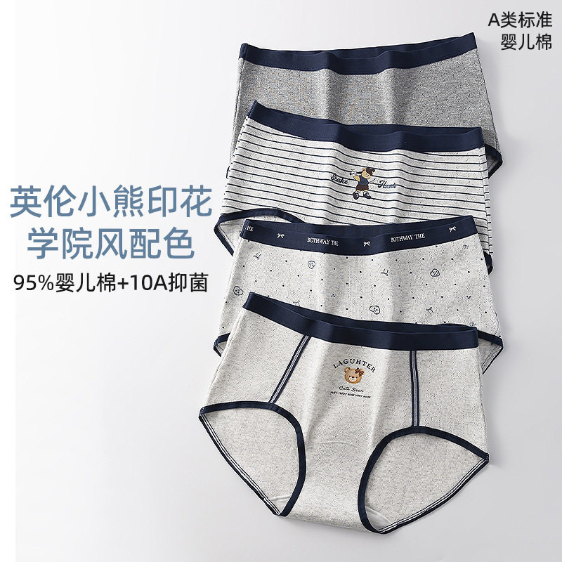 女生纯棉内裤女中腰全棉10A抗菌加长裆大码A类棉英伦风女士内裤女