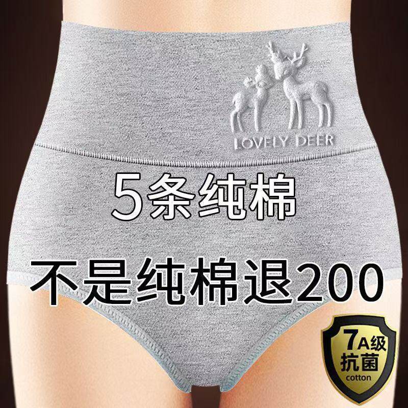 高腰纯棉内裤女大码收腹提臀抗菌无染原棉纯白提花女士三角裤头