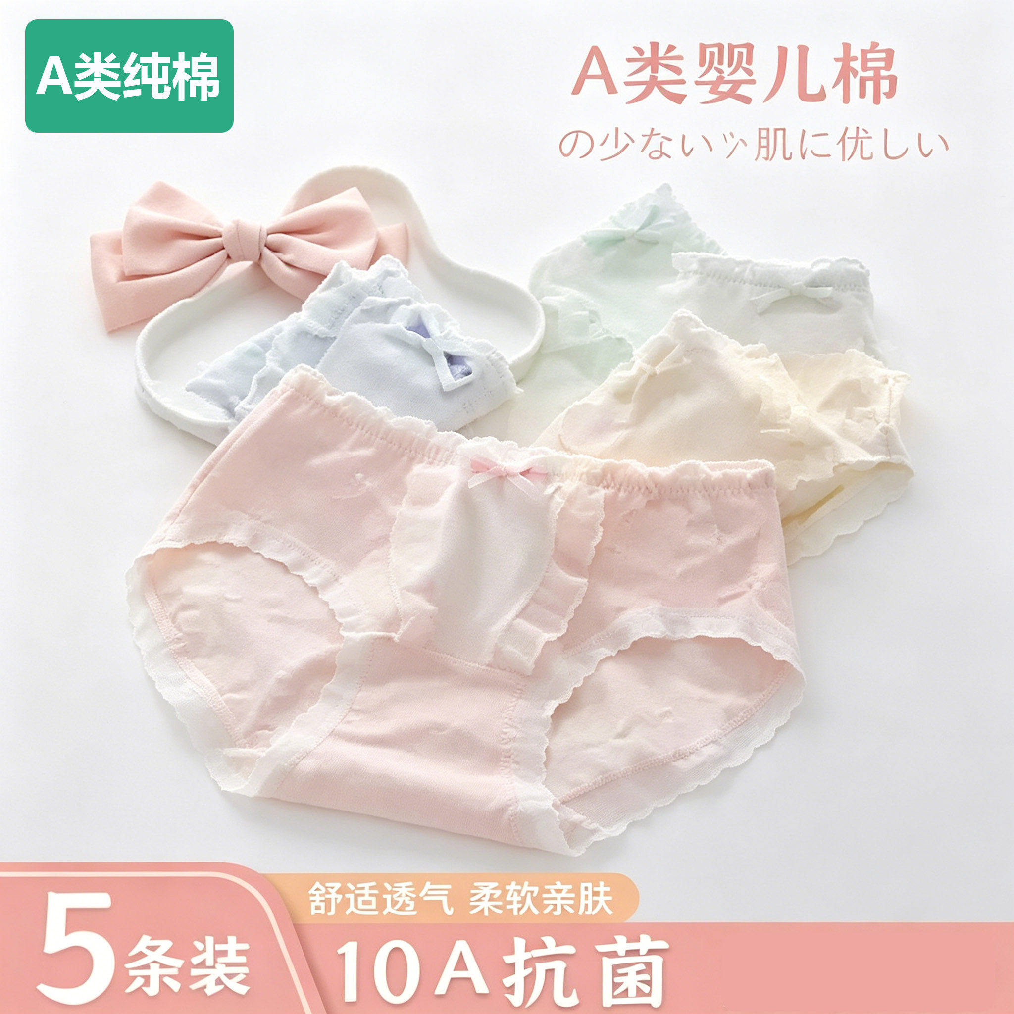 全棉女童内裤10A抗菌桑蚕丝加长裆中腰透气女孩学生发育期三角短