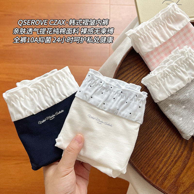 新款蕾丝内裤女士纯棉10A益菌加长裆中腰纯欲甜美少女无痕三角裤