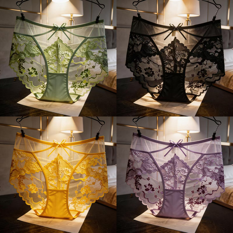 2025新款蕾丝性感内裤女士夏季超薄透明高腰收腹无痕网纱三角短裤
