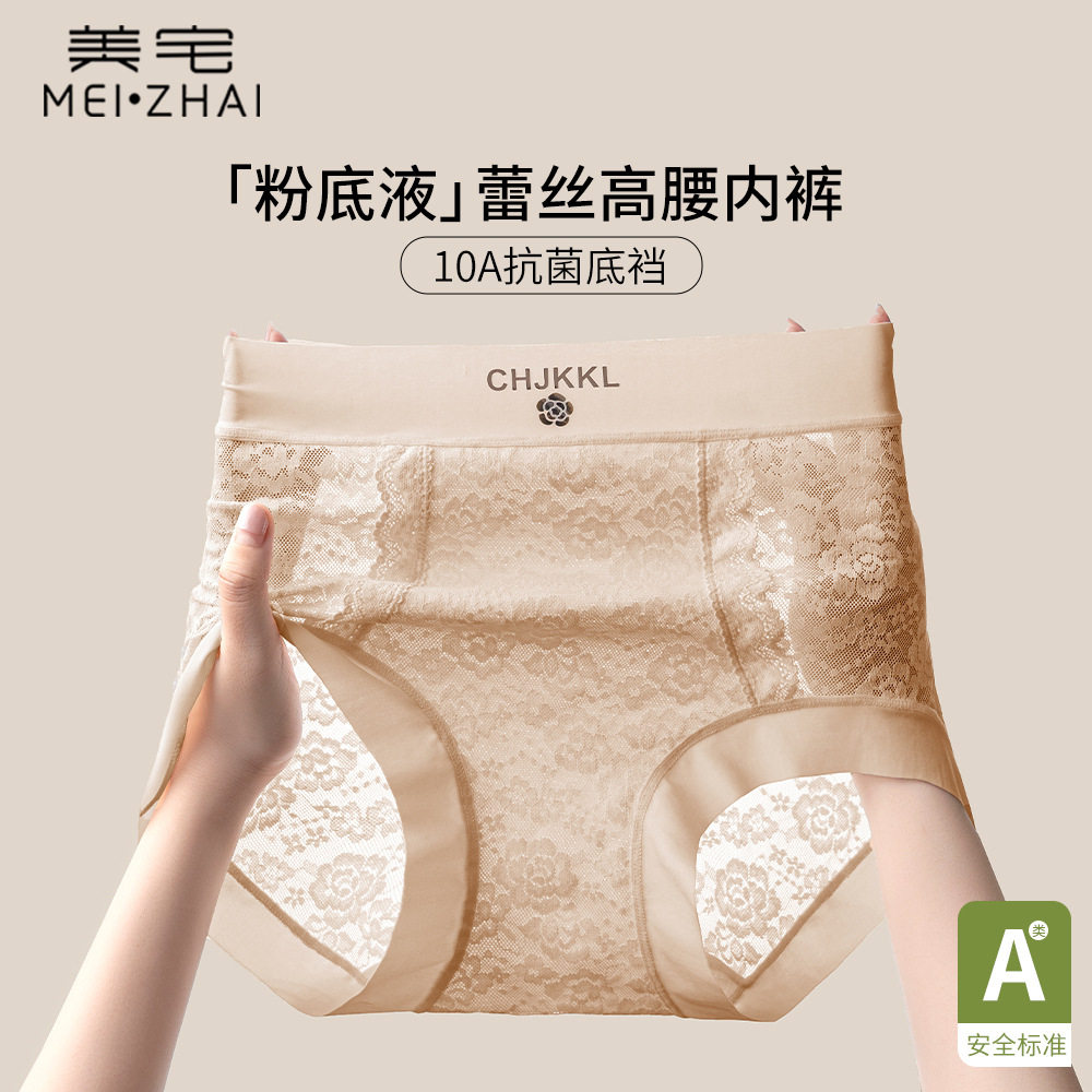 热卖美宅女式无痕蕾丝高腰收腹内裤桑蚕丝大码夏薄款性感舒适优选
