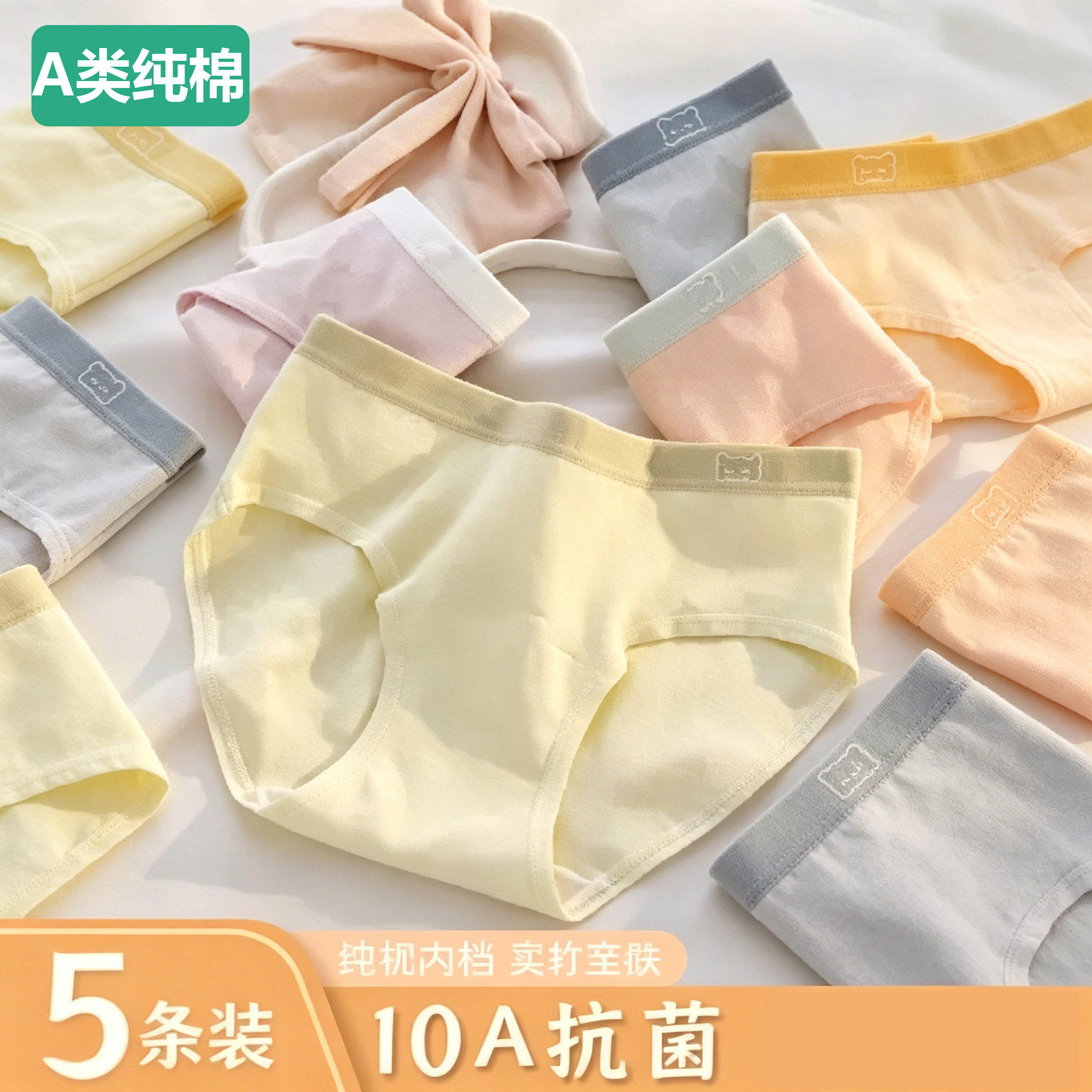全棉女大童7A抗菌纯棉裆内裤初中高中生中腰透气学生发育期三角短
