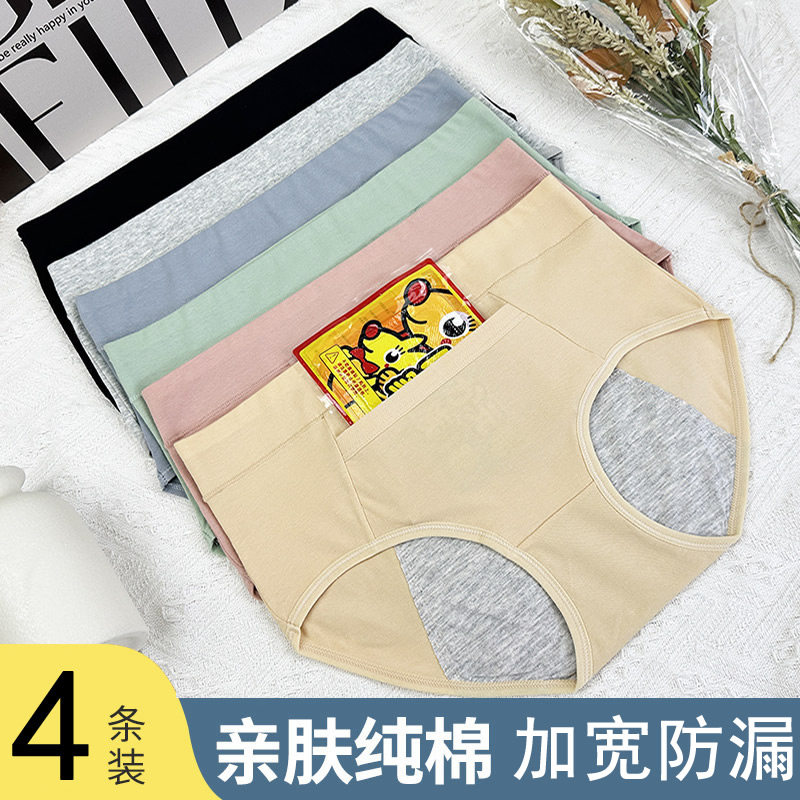 防漏姨妈期内裤少女孩生理期专用纯棉带口袋兜女生可放暖宝宝裤头