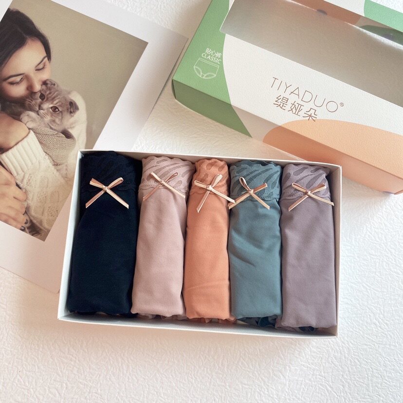 缇娅朵6240内裤女五条盒装棉档中腰透气蕾丝边弹力舒适三角短裤子