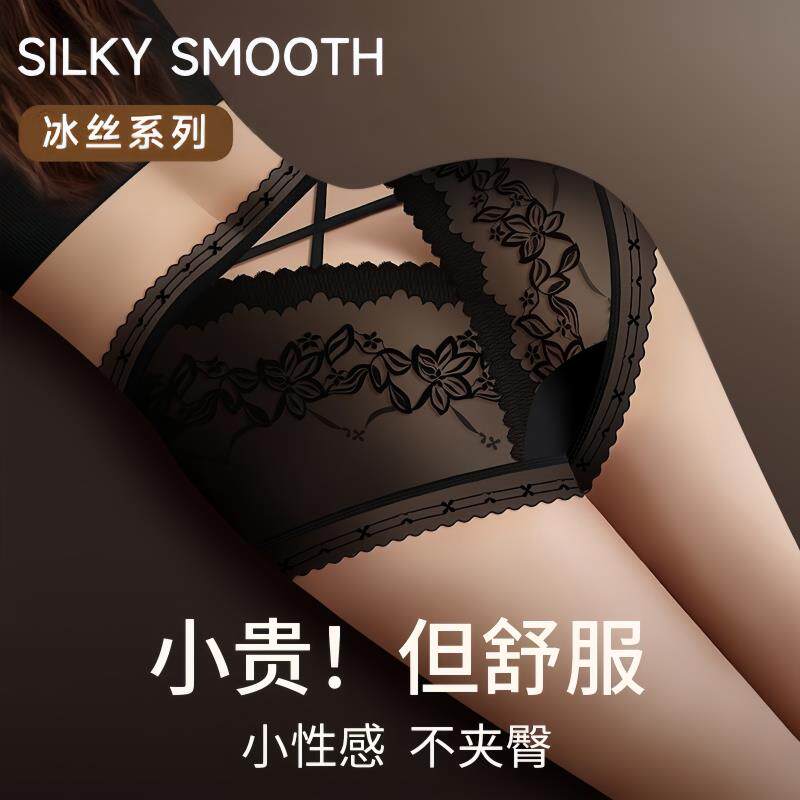 法国2026新款蕾丝内裤女士冰丝超薄性感透明高腰包臀提臀三角短裤