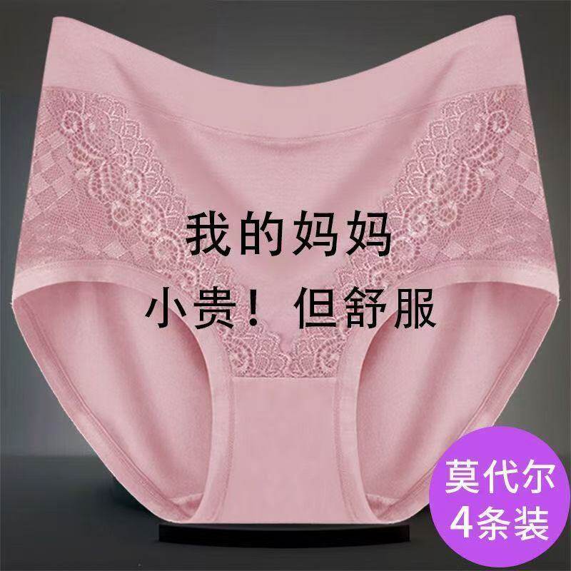 莫代尔高腰蕾丝女士内裤女收腹提臀胖mm大码中老年加肥加大三角裤