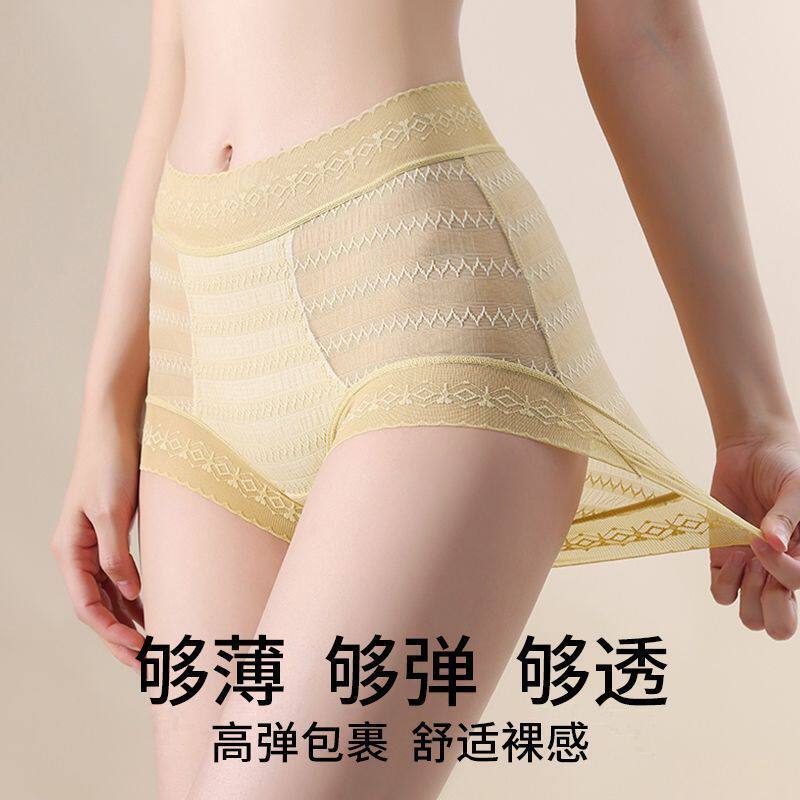 加长档高腰女款内裤女颜控蕾丝纯欲无痕收腹收小肚子女士大码短裤