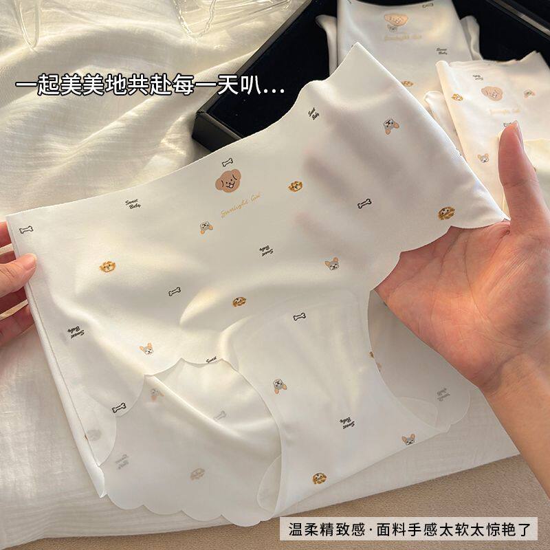 新款无痕速干少女三角内裤舒适加长底档中腰抗菌可爱小狗三角内裤