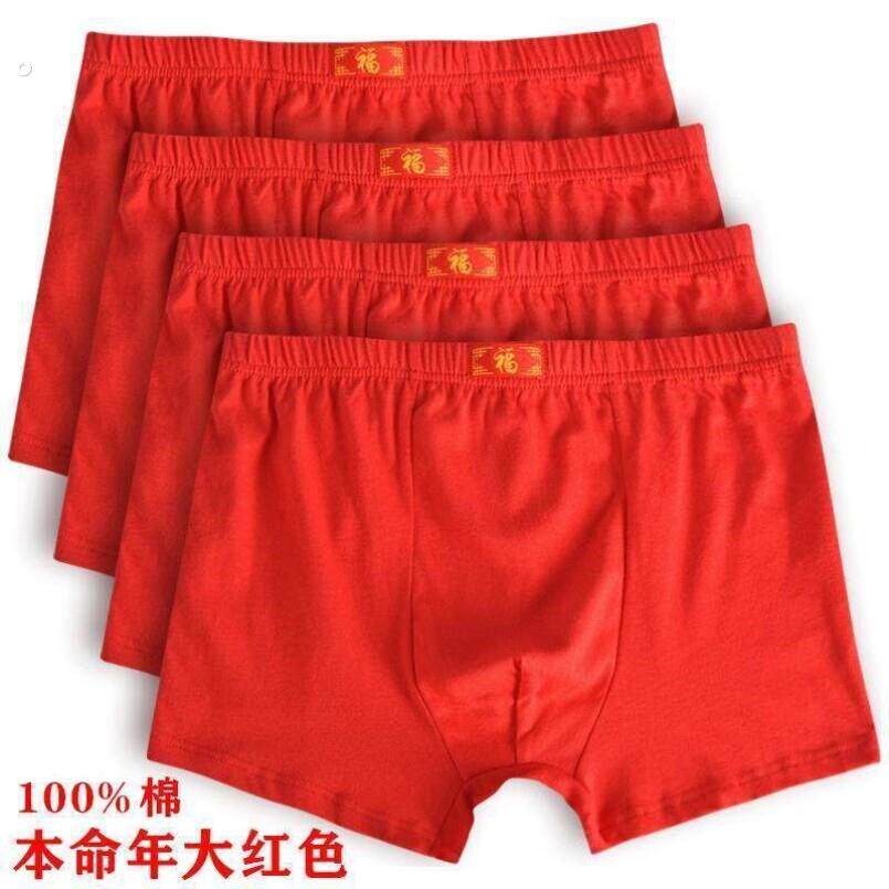 棉平角男士内裤福字本命年大红色裤头青年底裤大码四角裤