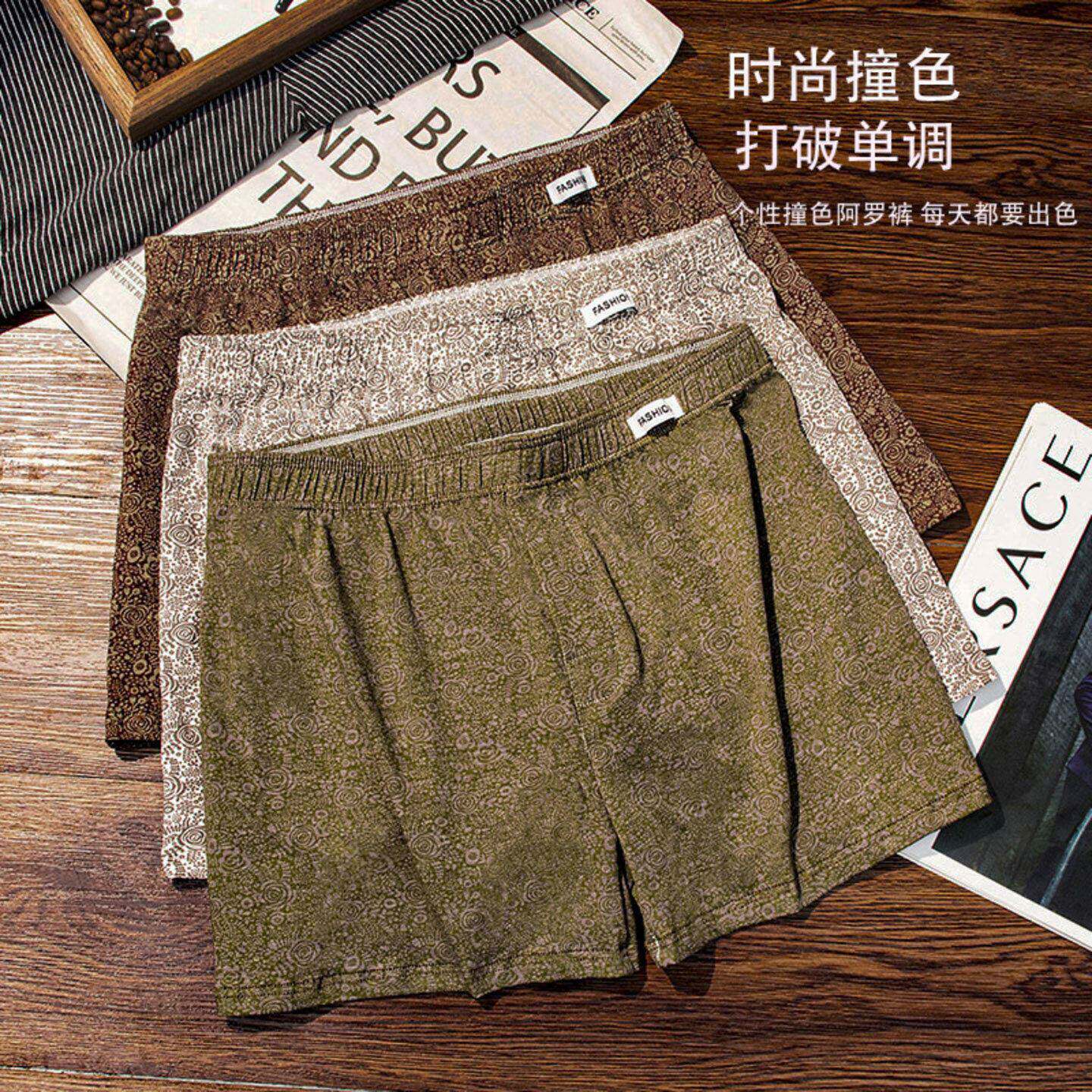 /燕乐小店复古印花玫瑰阿罗裤男内裤纯棉宽松大码家居裤平角短a4