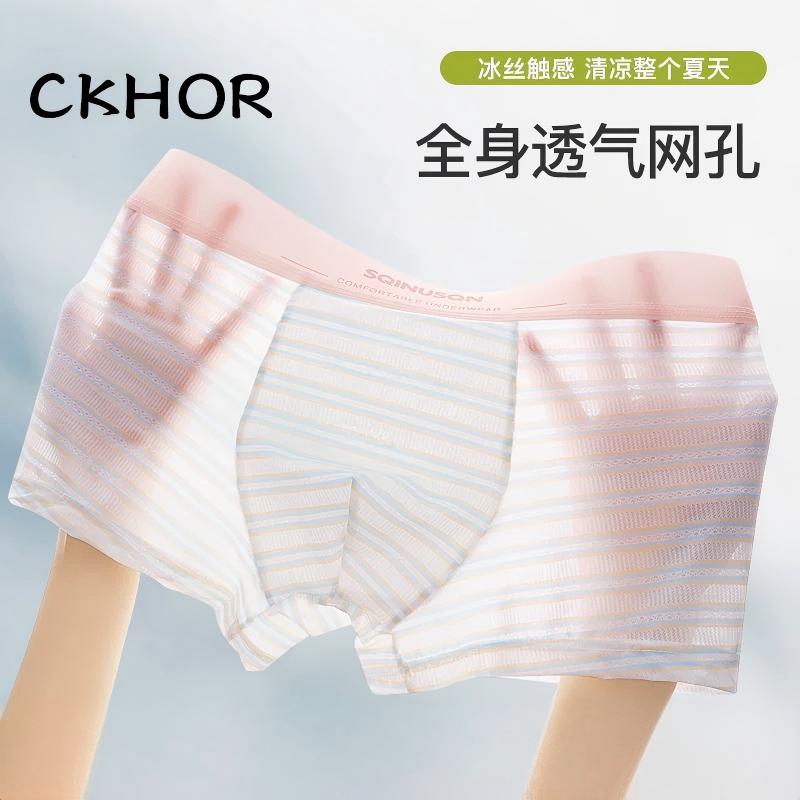CKHOR 男内裤冰爽网孔透气平角短裤男条纹简约舒适青年四角短裤衩