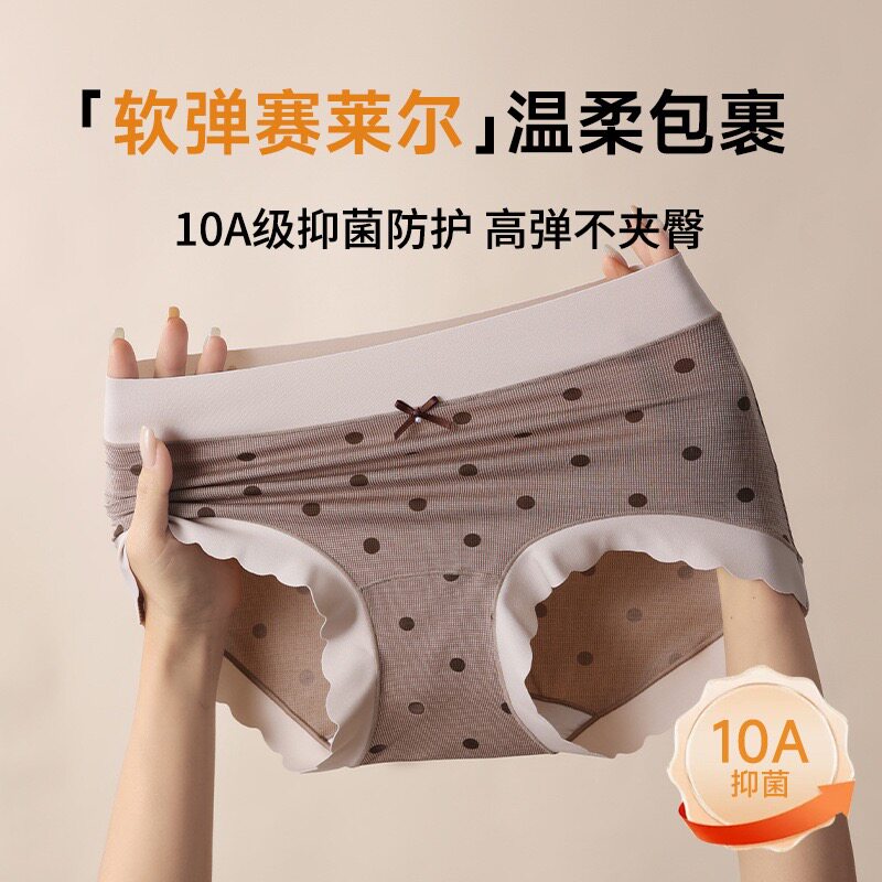 法式波点80支莱赛尔棉内裤无痕高弹中腰软糯亲肤棉质少女三角裤