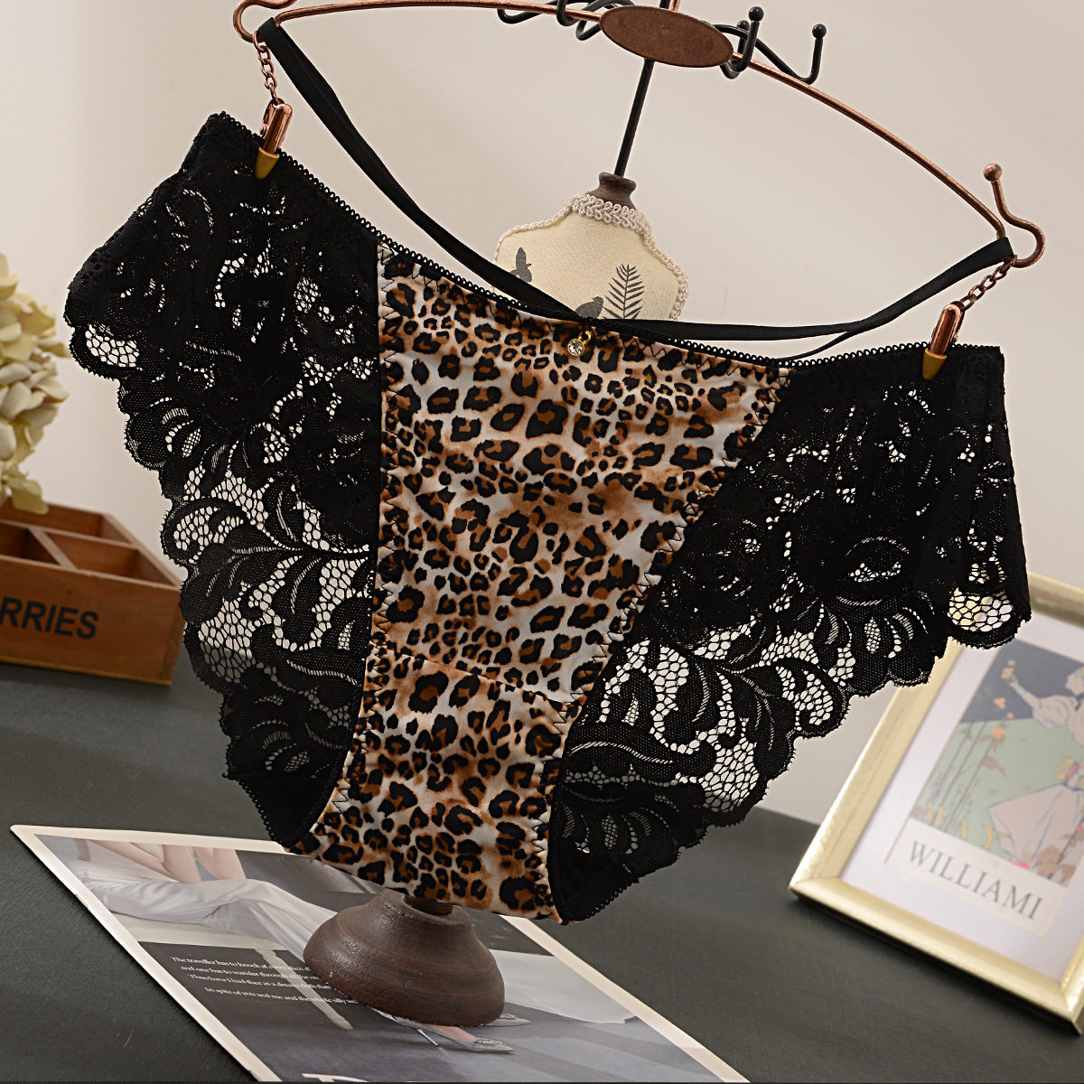 欧美豹纹性感蕾丝边内裤女透明网纱棉档女三角裤时尚潮流辣妹内内