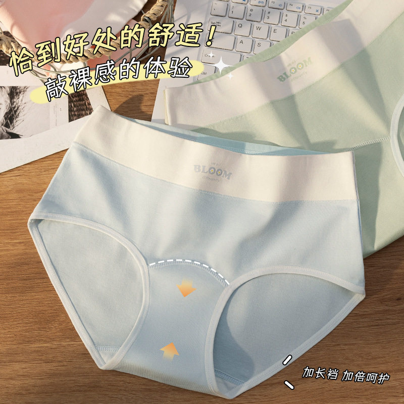 加长裆纯棉中腰女士内裤柔软舒适吸汗透气甜美女生学生三角裤头