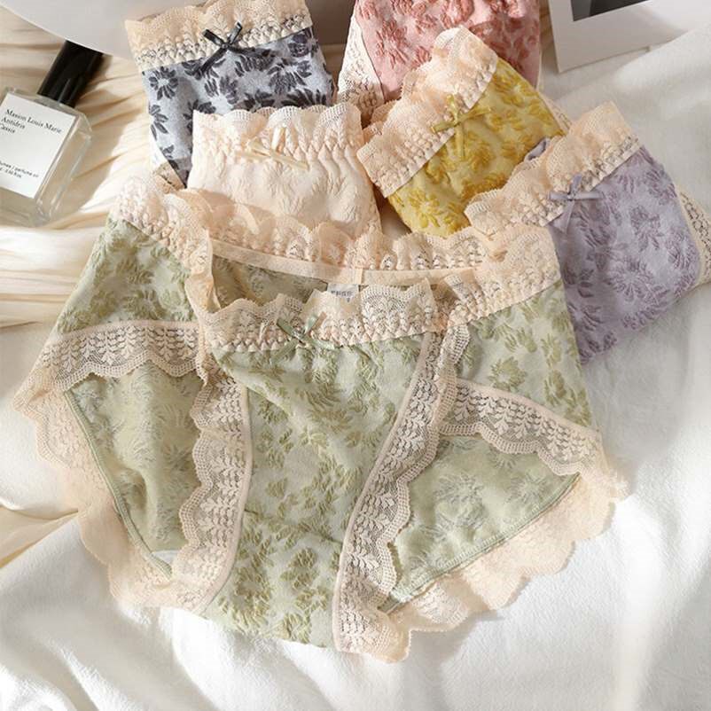 甜甜的少女风你也可以!棉裆弹力包臀田园风女内裤