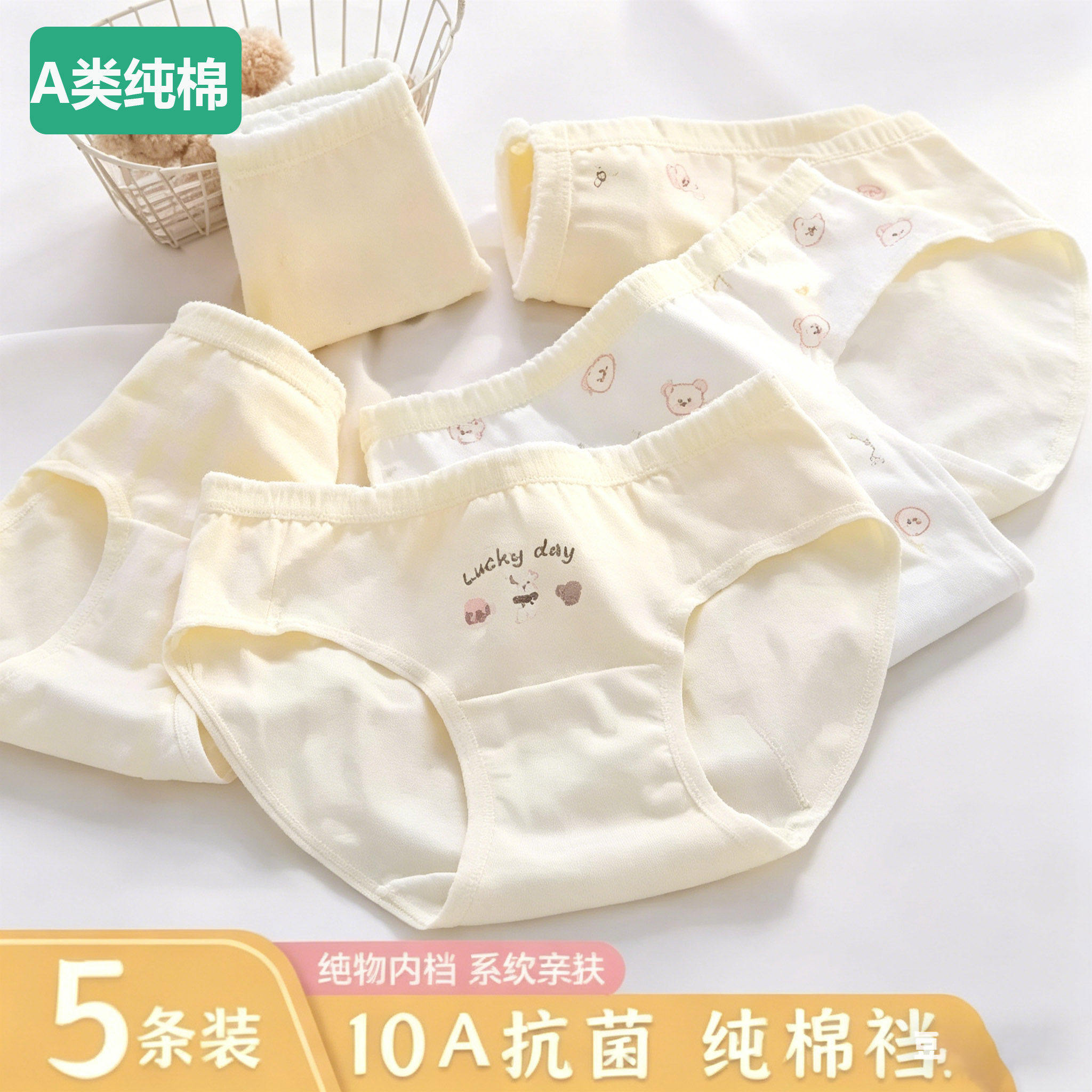 全棉少女内裤10A抗菌纯棉内裆A类棉中腰透气可爱大童学生发育期三