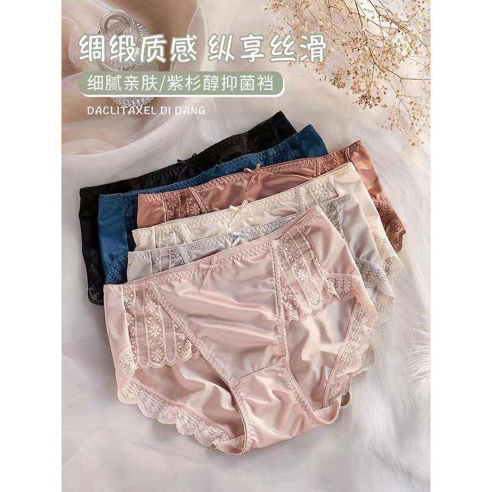无痕内裤女性感蕾丝裸感冰丝缎面中腰大尺码抗菌抑菌三角裤高级短