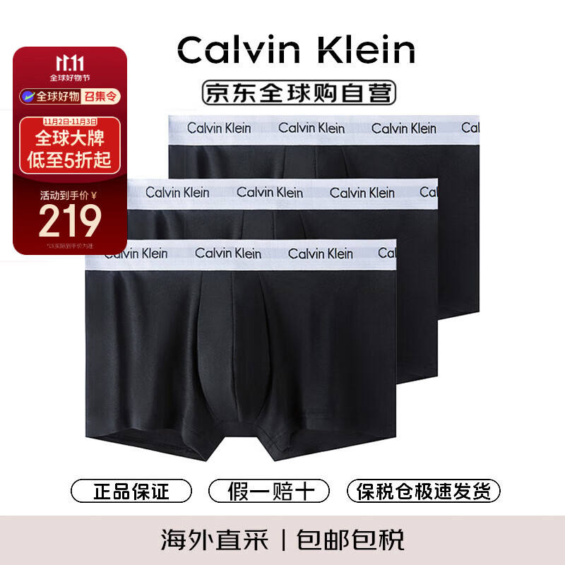 Calvin Klein CK 男士平角内裤套装 3条装 送男友礼物 U2664G 001黑色 L