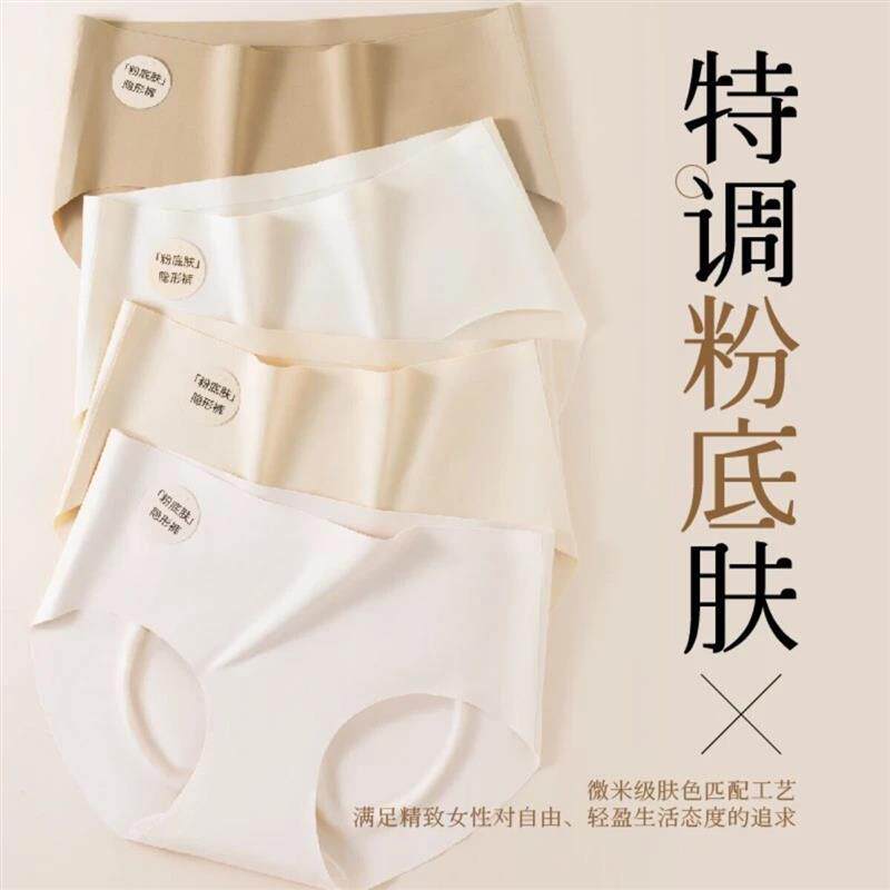 裸感女士无痕内裤桑蚕丝抗菌中腰冰丝不夹臀女生三角短裤健身瑜伽