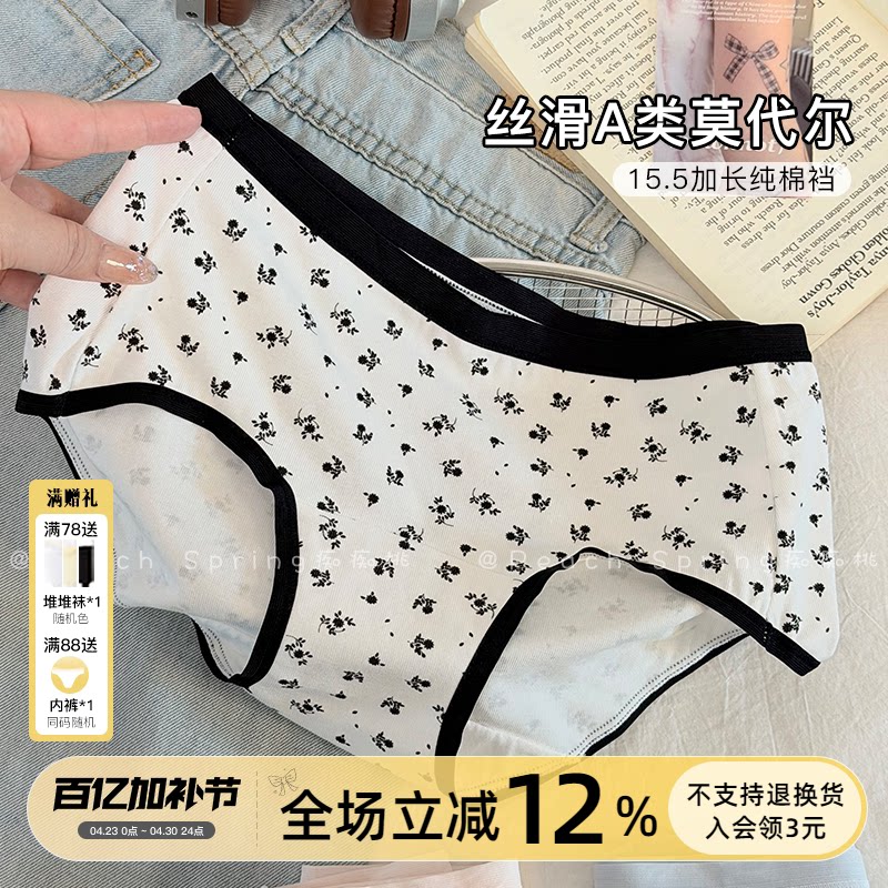 「风铃恋曲」莫代尔包臀少女中腰内裤三角A类棉15cm加长档可裸睡
