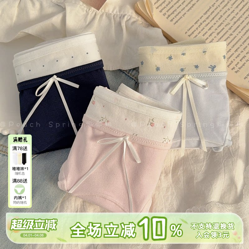 花间辞~纯棉内裤少女粉色可爱甜美透气包臀女生中腰三角学生碎花