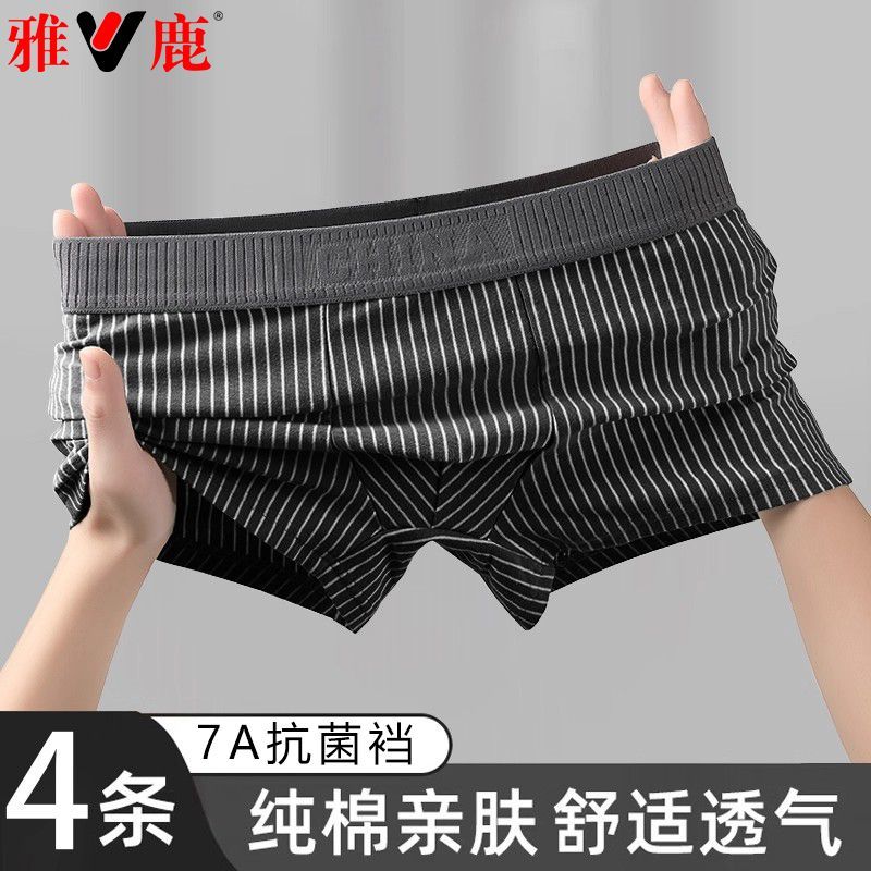 雅鹿男士内裤纯棉条纹中腰四角裤青年高档透气平角短裤头抑菌透气