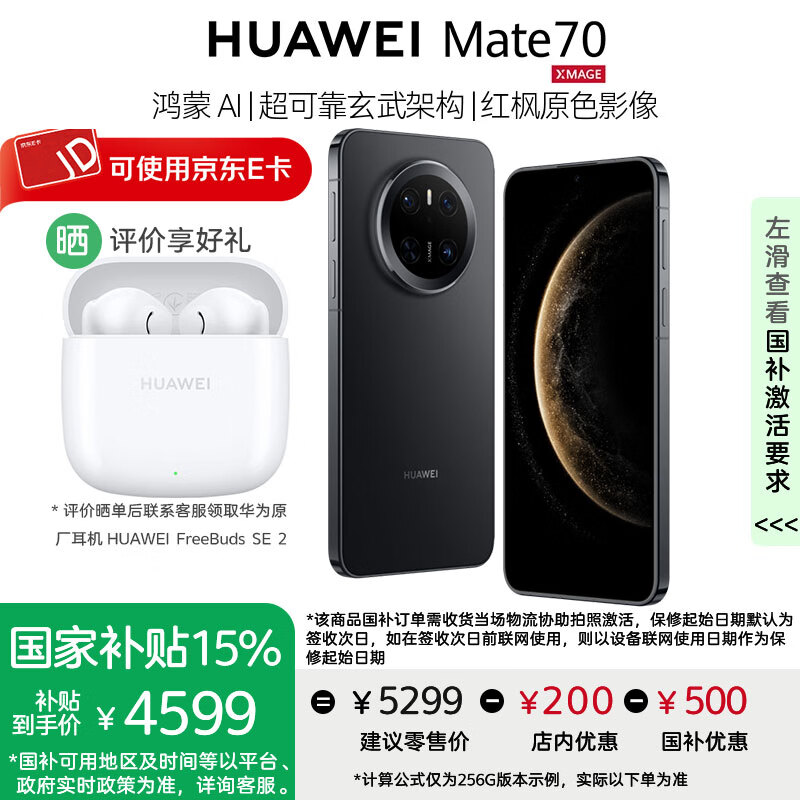 华为Mate 70 手机【国家补贴500元+晒单送华为蓝牙耳机】 曜石黑 12GB+512GB 官方标配