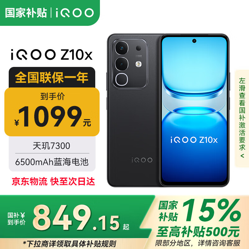 vivoiQOO Z10x 【国家补贴15%】新品5G手机 6500mAh超薄蓝海电池 天玑7300 学生电竞游戏手机 星穹黑【标配版】 8GB+256GB