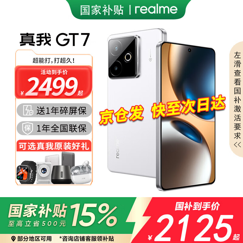 realme【国家补贴15%】真我GT7 天玑9400+旗舰芯 7200mAH泰坦电池 5G智能电竞游戏手机 石墨烯·雪 12+256GB