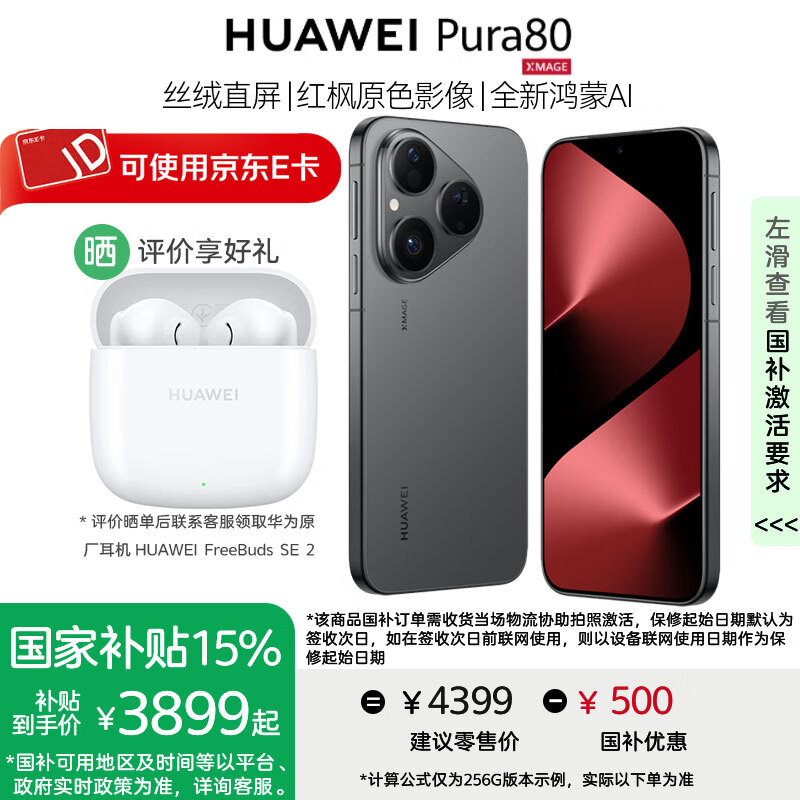 HUAWEI Pura 80 国家补贴 新品旗舰华为手机 p80 丝绒直屏 红枫原色影像 北斗卫星消息 华为鸿蒙智能手机 丝绒黑 12GB+512GB 官方标配