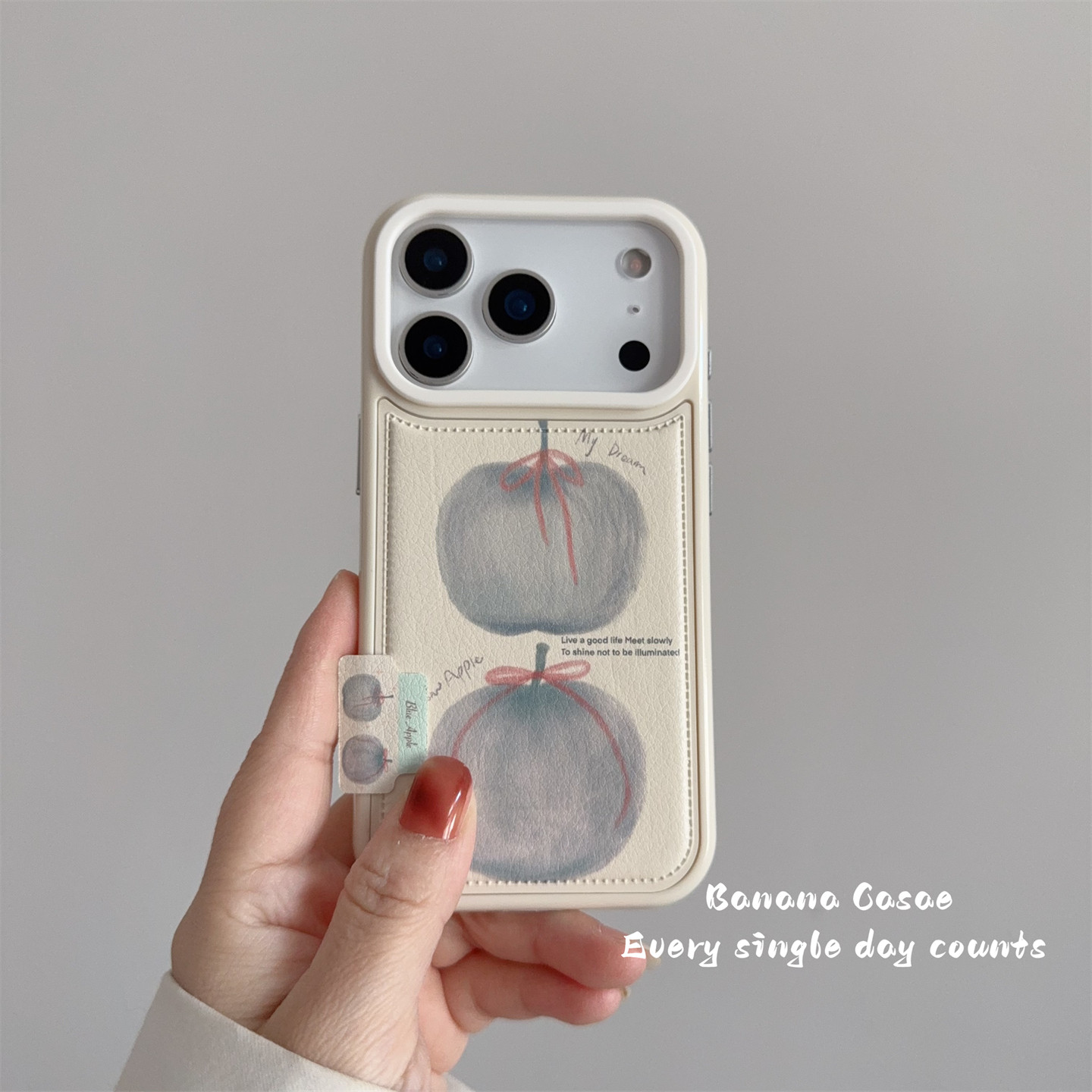 BananaCase韩国ins小众珍珠白油画蓝苹果贴皮壳适用17pro苹果16promax手机壳iPhone13新款14/15pro保护套16女