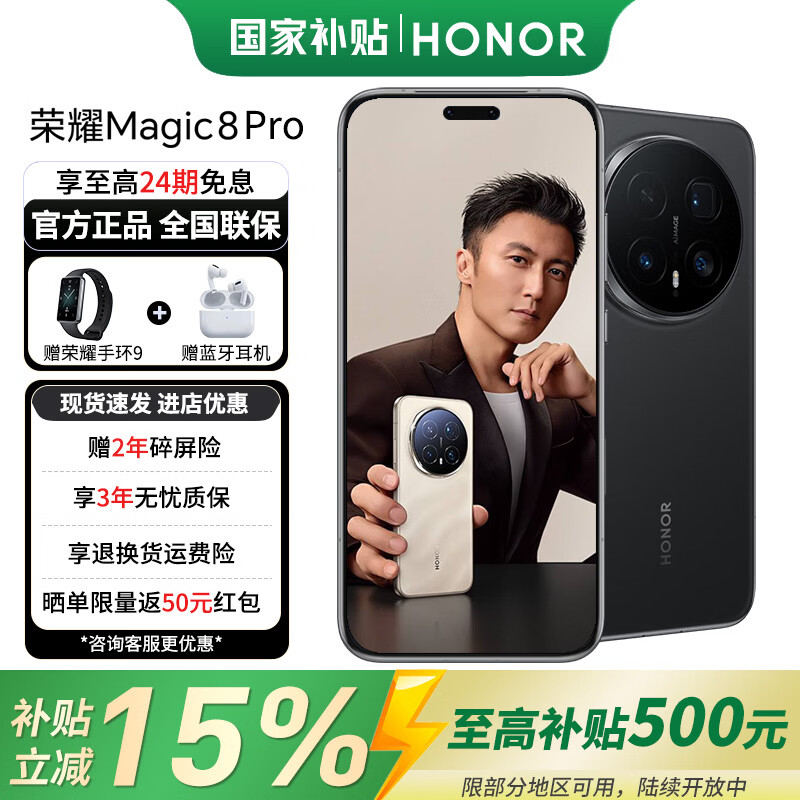 荣耀Magic8 Pro【国家补贴】新品5G旗舰手机 2亿长焦超夜神 第五代骁龙8至尊版 AI手机荣耀magic8pro 绒黑色 16GB+512GB 官方标配