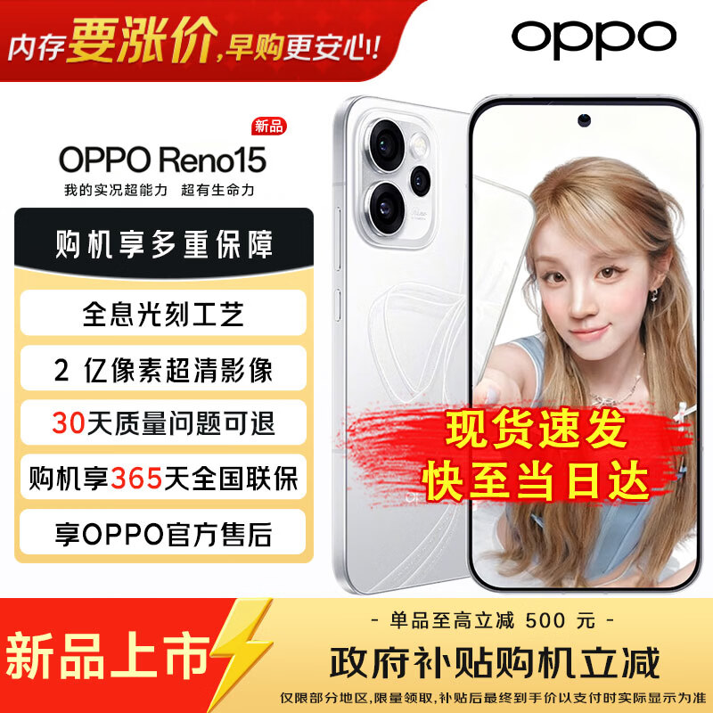OPPO【政府补贴】OPPO Reno 15 星光蝴蝶结 2亿像素超清影像 满级防水 超出圈实况 AI拍照手机reno15 星光蝴蝶结 12GB+512GB