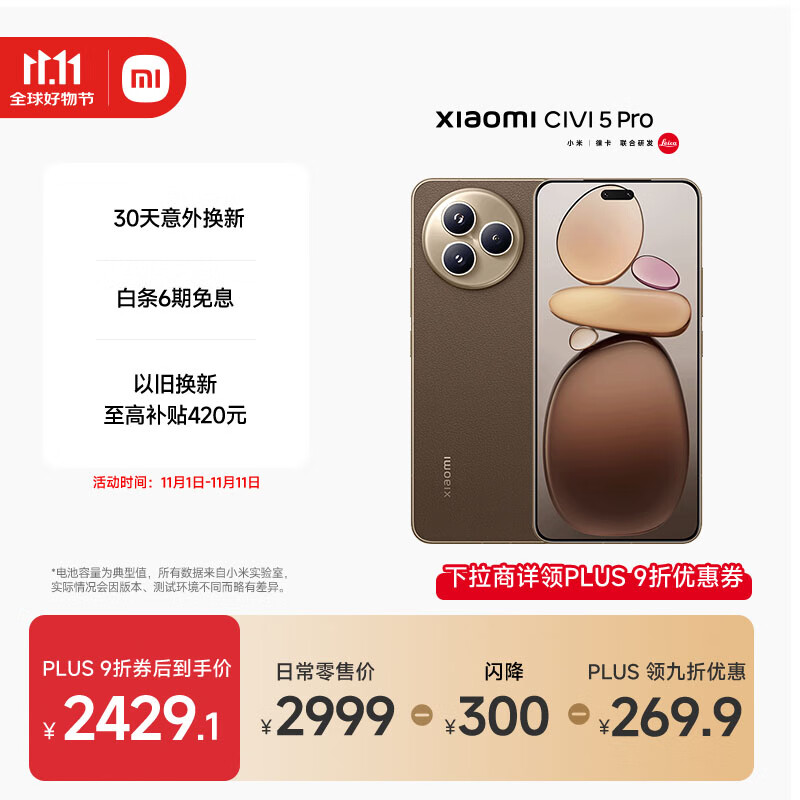 小米(MI)Xiaomi Civi 5 Pro 第四代骁龙8s 全能轻薄旗舰 12GB+256GB 冰美式 小米5g手机 国家补贴