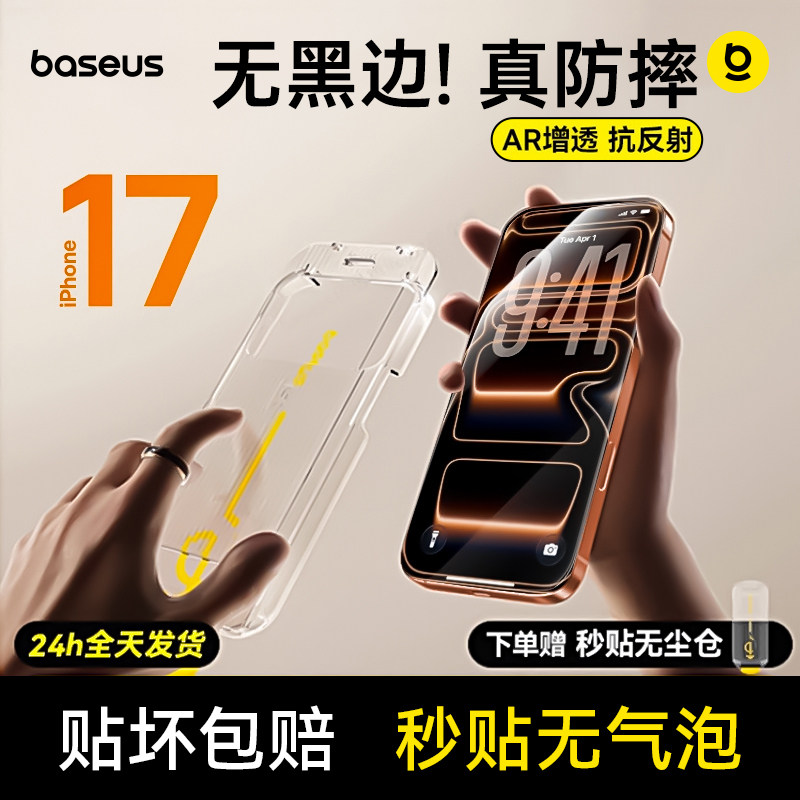 倍思无界膜适用苹果iPhone17钢化膜16ProMax手机保护膜15Pro全屏覆盖14无尘仓13防爆贴膜12新款无黑边AR增透