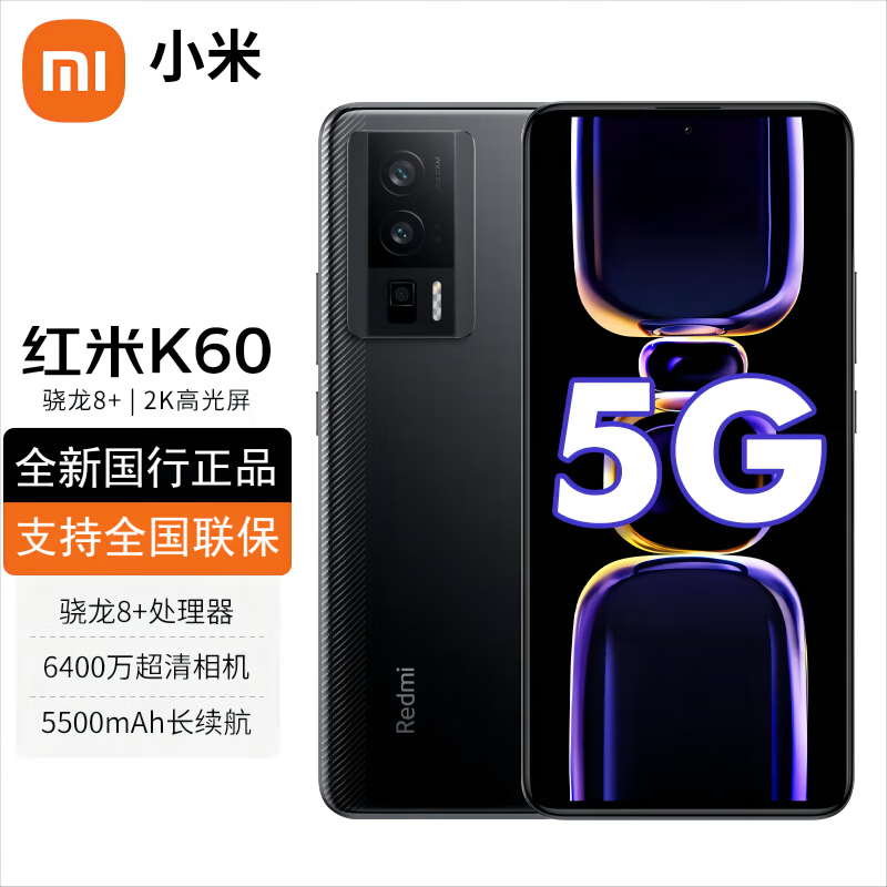 小米Redmi 红米K60 全新未拆封未激活+全国联保 骁龙8+ 2K高光屏 5500mAh长续航 全网通手机 墨羽 12+256G