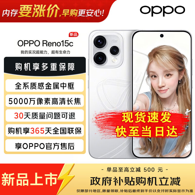 OPPO【政府补贴】Reno15c 星光蝴蝶结 5000万像素高清长焦 5G智能 reno15 c 新品AI拍照手机 星光蝴蝶结 12GB+512GB 官方标配