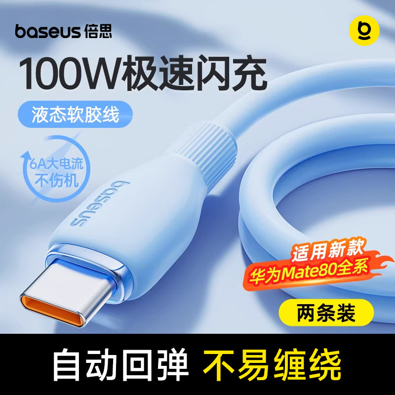 倍思type-c数据线6A适用华为mate80小米vivo安卓充电线100W88W66W手机Pura70pro平板加长usb转tpyec超级快充