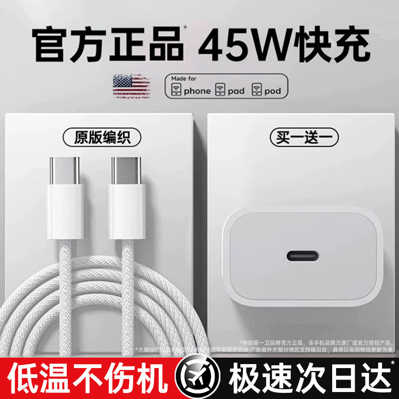 【官方正品】第一卫适用苹果17充电线iPhone16数据线15promax器头双typec闪快充14plus手机ipad编织原一套装