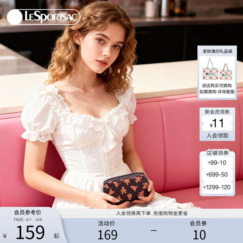 LeSportsac乐播诗秋冬新款经典系列咖色满印泰迪熊手机包女手拿包