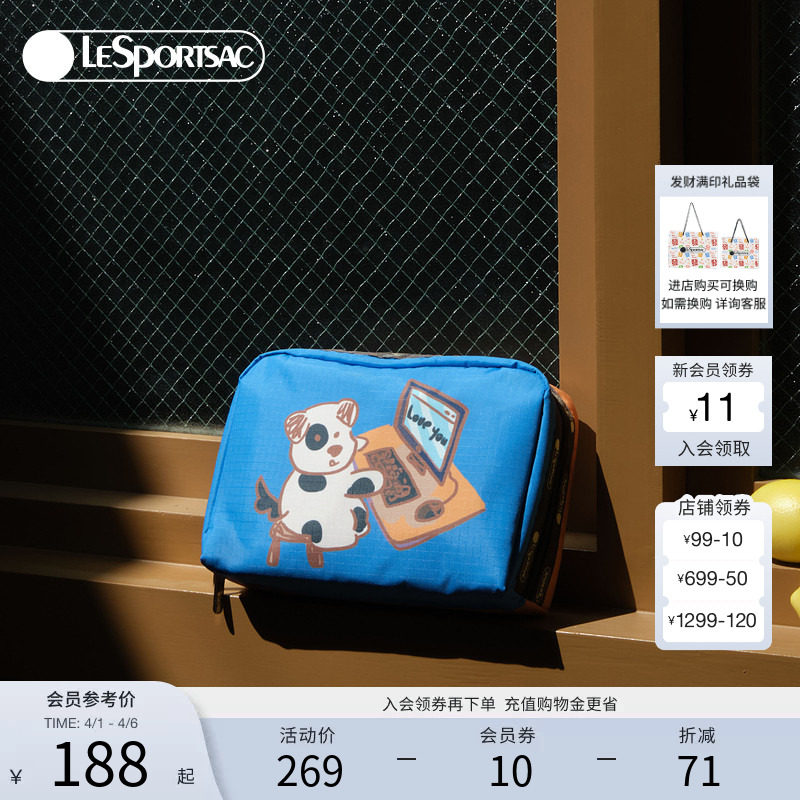 LeSportsac乐播诗新款潮流系列萌趣小狗印花日常出行手机包手拿包