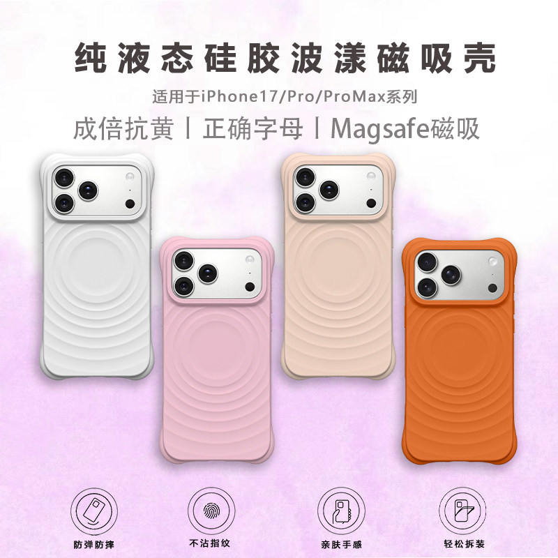 华强北顶版波漾磁吸手机壳水波纹纯色手机壳MagSafe磁吸充电白色液态硅胶手机壳适用苹果iPhone17/16/15