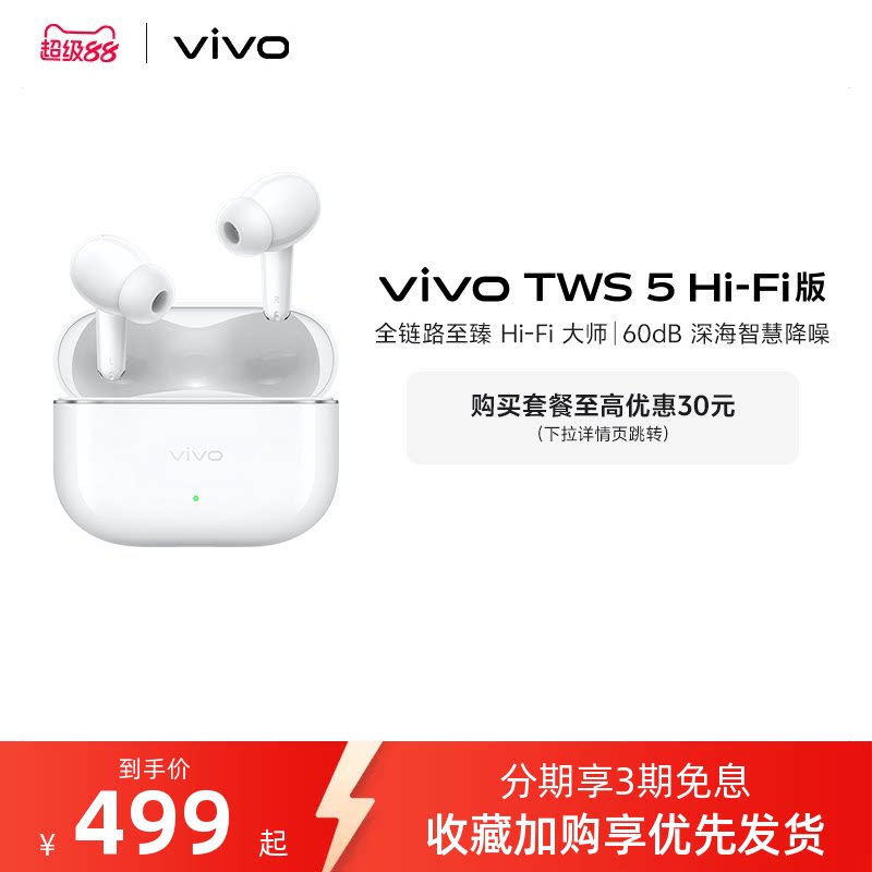 【3期免息】vivo TWS 5Hi-Fi版新品主动降噪蓝牙耳机