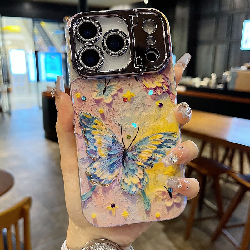 适用苹果系列iPhone17新款手机壳16promax14promax文艺渐变紫蝴蝶15pro/13promax枪色精孔镜框支架网红保护套