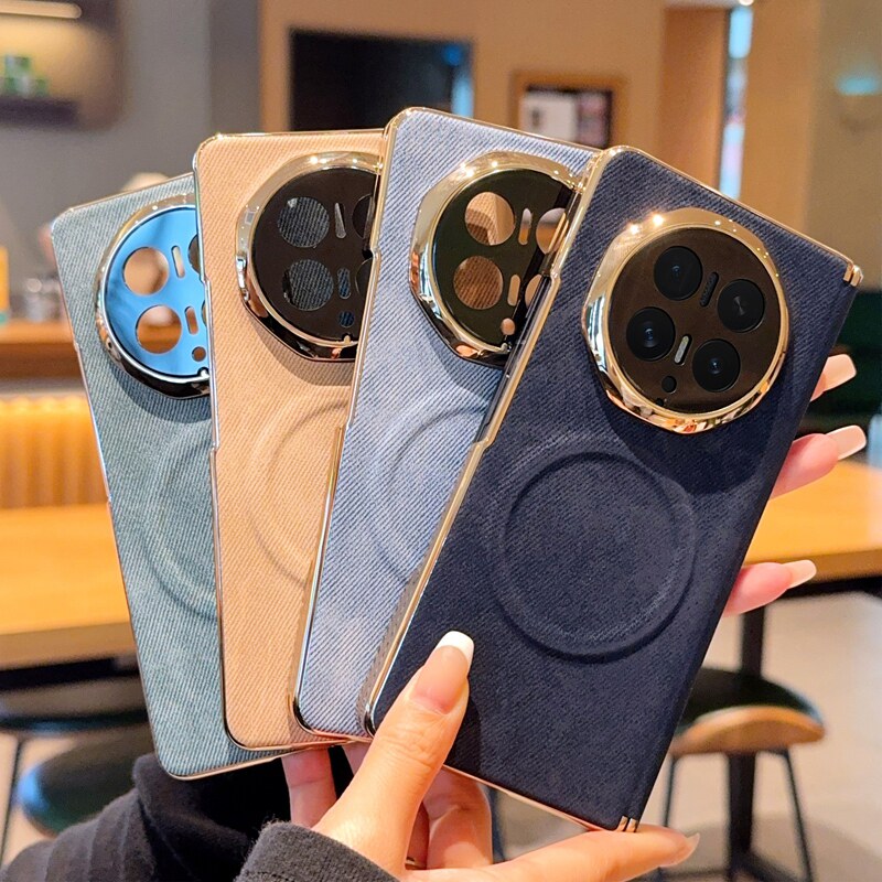 适用荣耀MagicV6手机壳全包简约防摔创意超薄牛仔纹荣耀MagicV6折叠屏保护套网红时尚磁吸电镀双中轴