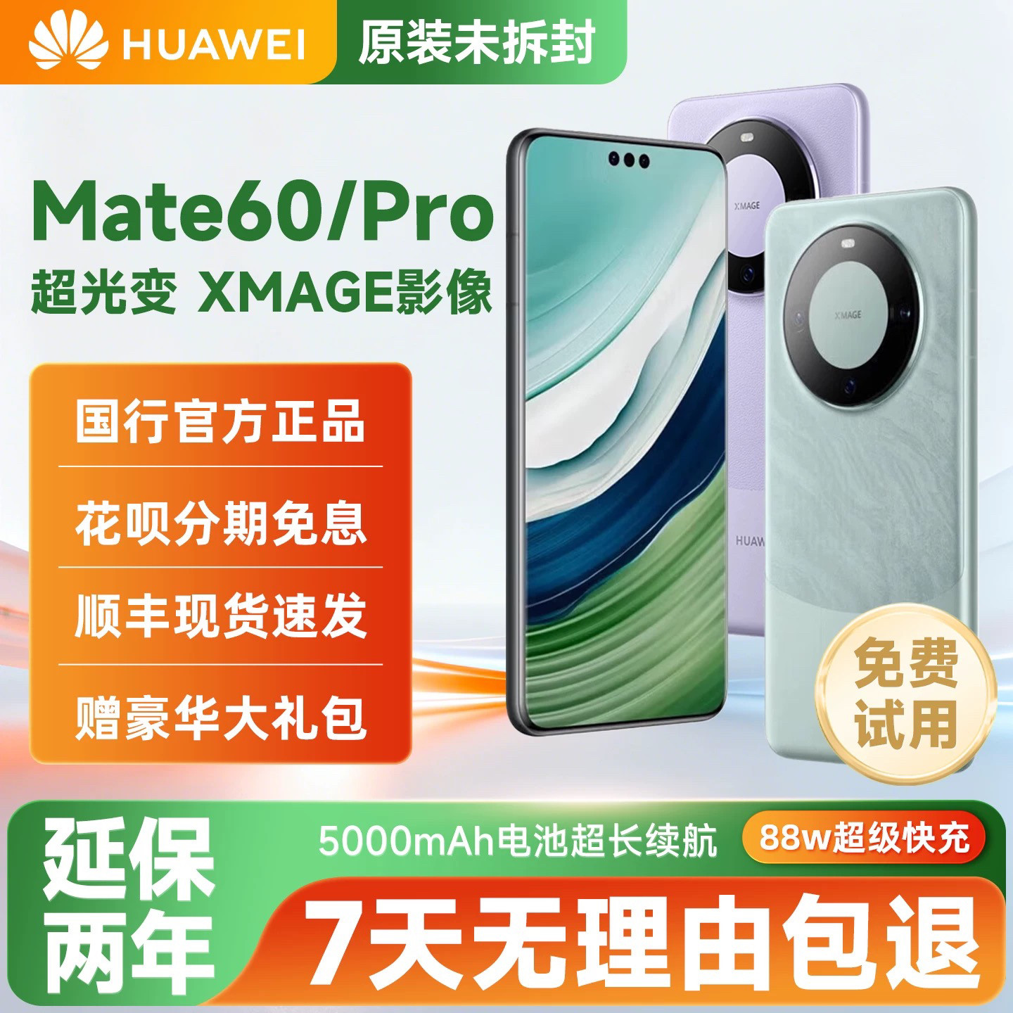 Huawei/华为 Mate 60直面屏5G双卡全网鸿蒙next系统麒麟9000S手机
