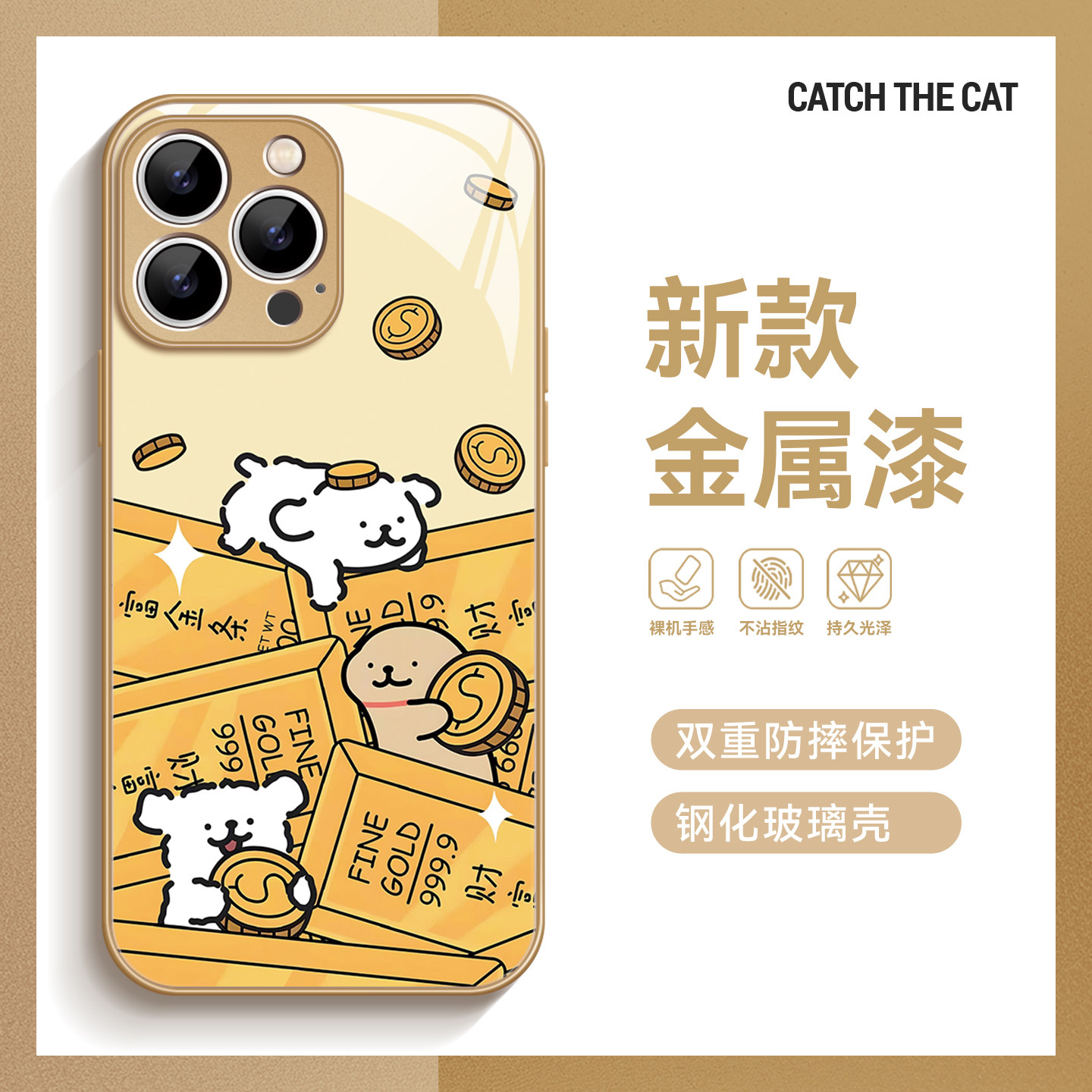 财运爆棚~可爱金条小狗高颜值适用iPhone16promax手机壳华为mate70小米15vivoS19玻璃iqooneo14苹果13荣耀90